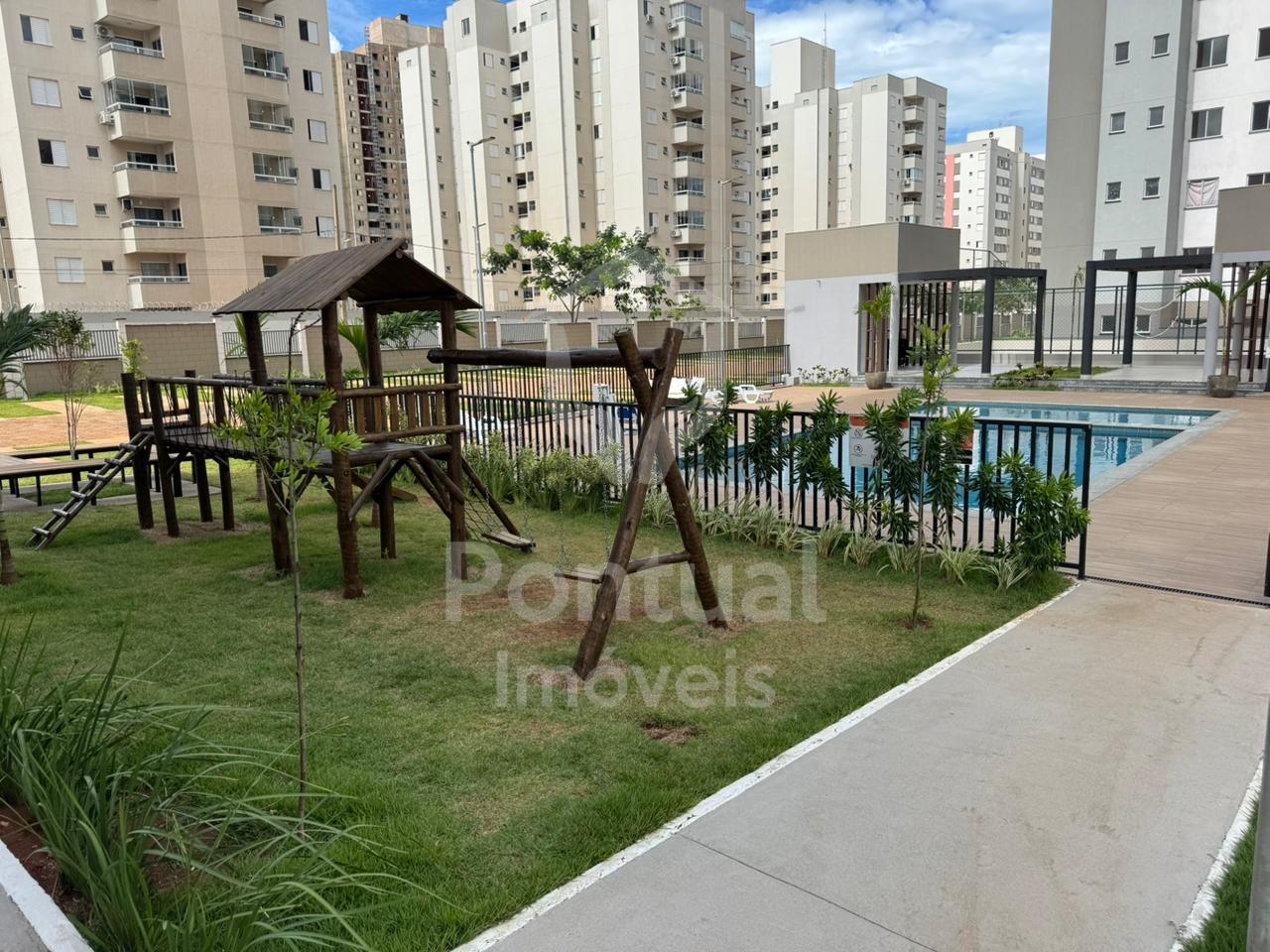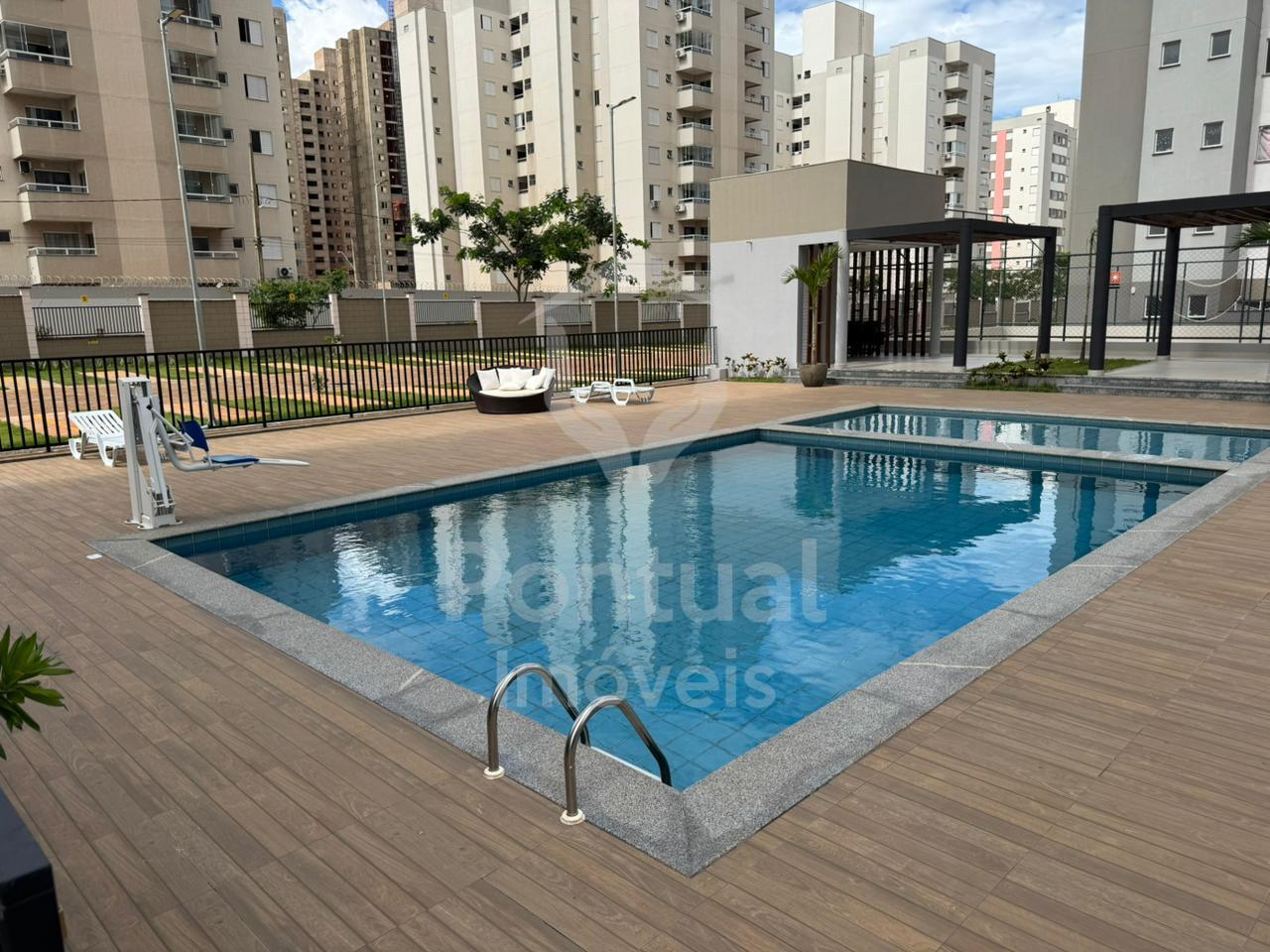 Sala, cozinha conjugada com lavanderia, banheiro social com box, 02 Quartos sendo uma suite, 01 vaga de garagem. Condomínio: 02 elevadores, portaria 24hs, salão de festa com área gourmet com churrasqueira, piscina e quadra esportiva.