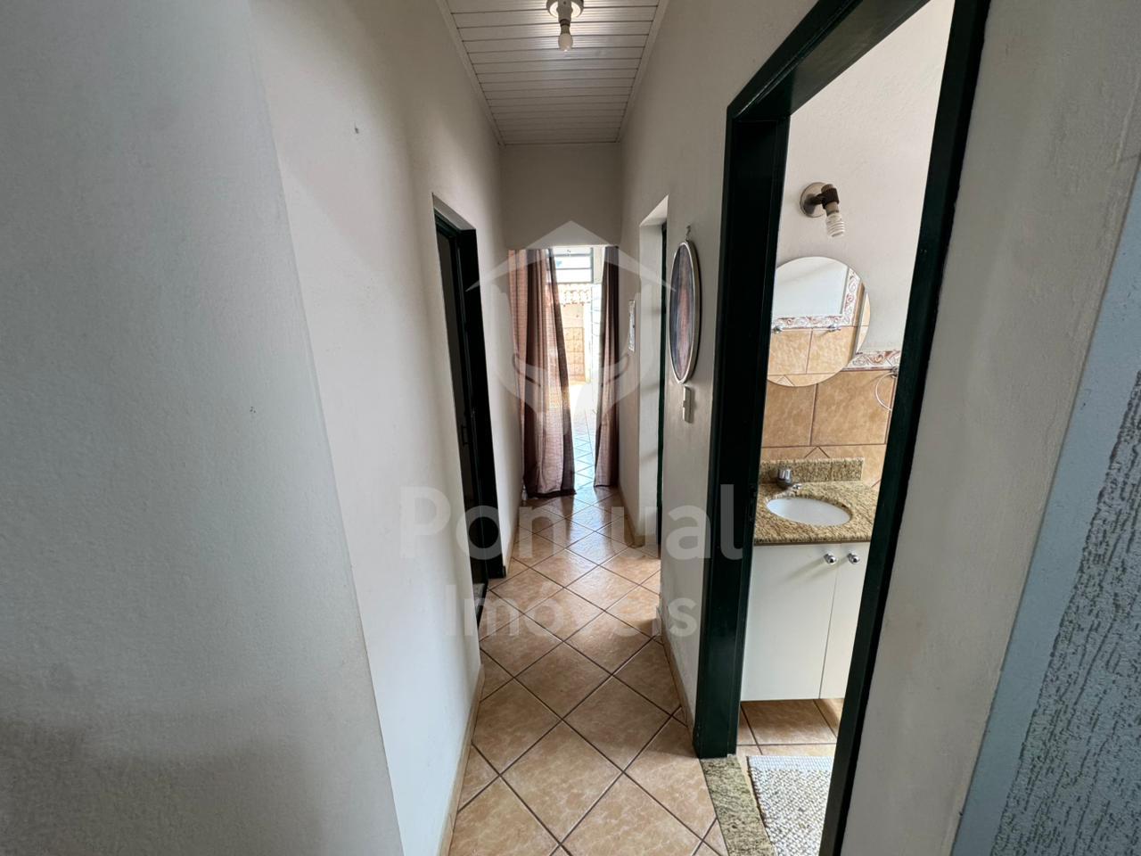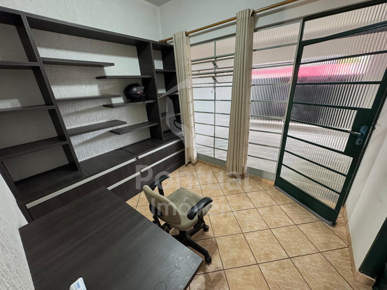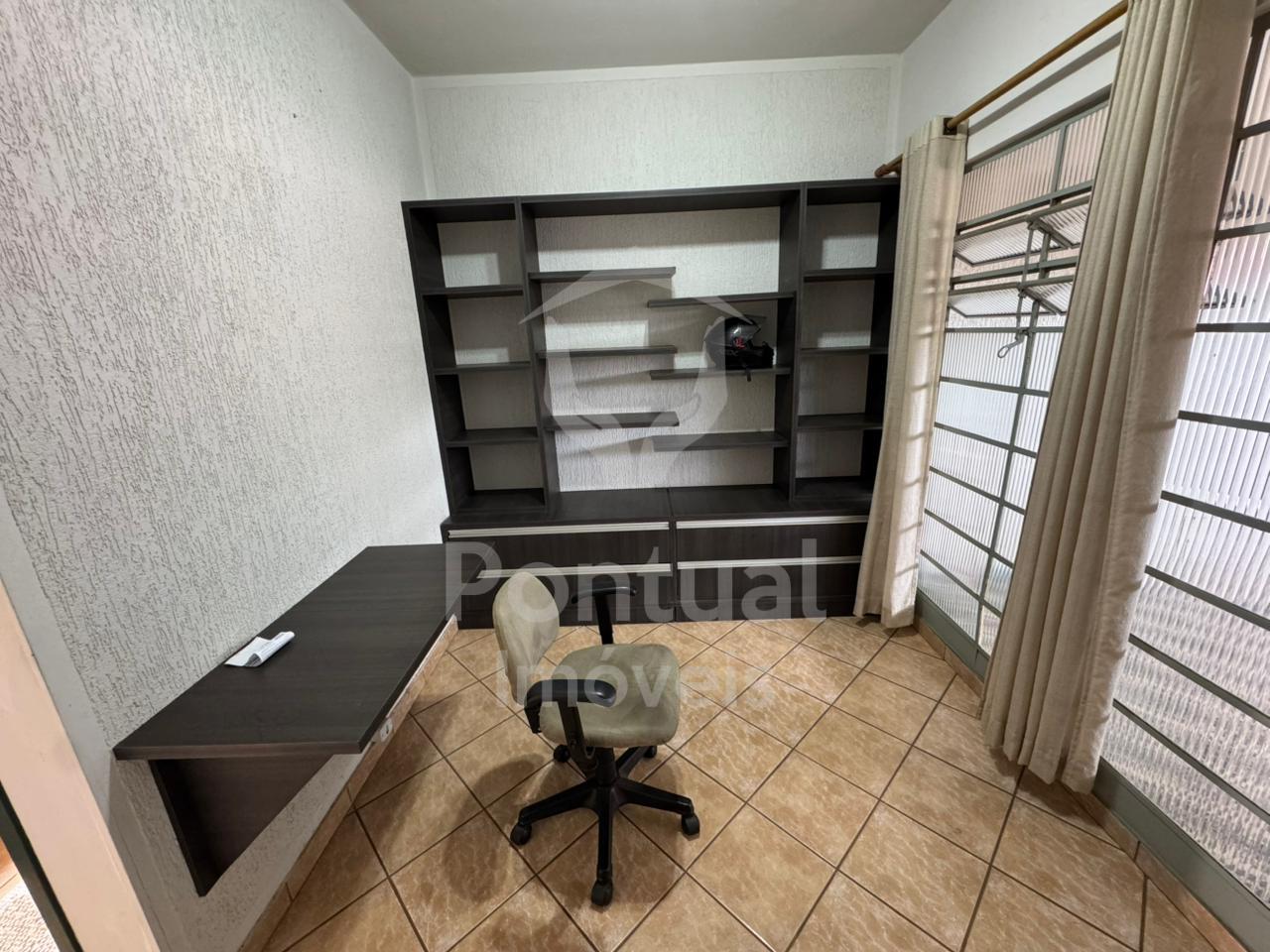Conta com portão e porteiro eletrônico, além de 1 vaga de garagem. O imóvel dispõe de 3 quartos, sendo um com armários, sala aconchegante com estante e mesa de canto, copa funcional e banheiro social completo com armários, box e espelho. Possui ainda um escritório versátil, que pode ser utilizado como quarto ou sala adicional. Cozinha com armários, área de serviço com banheiro e depósito, além de quintal cimentado.