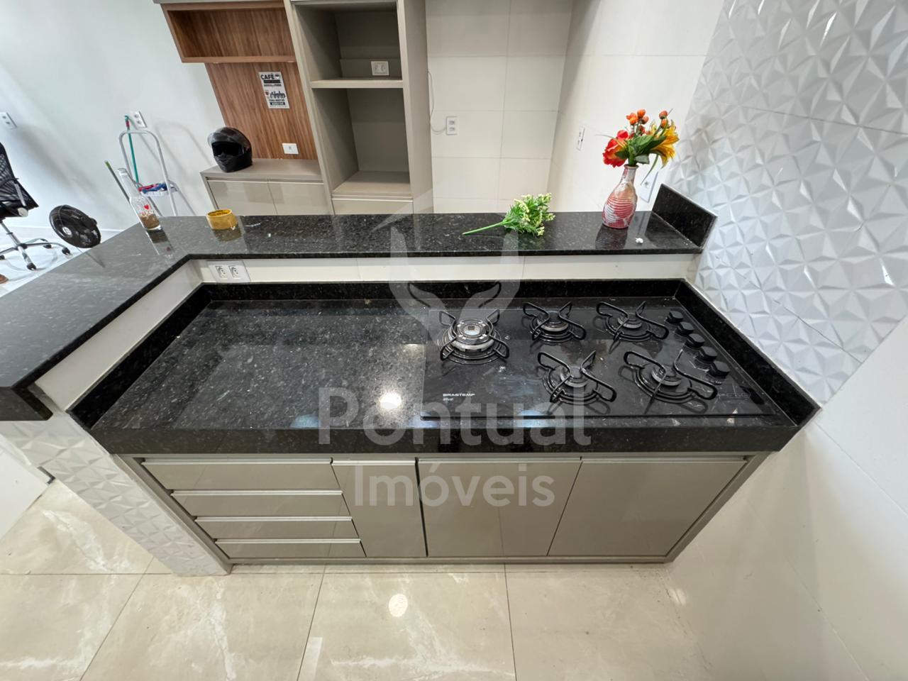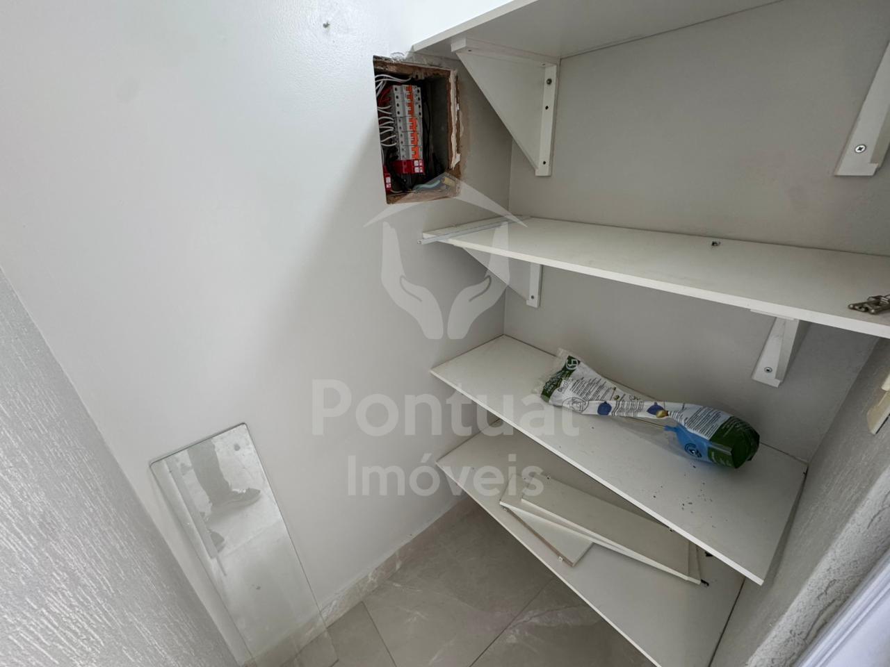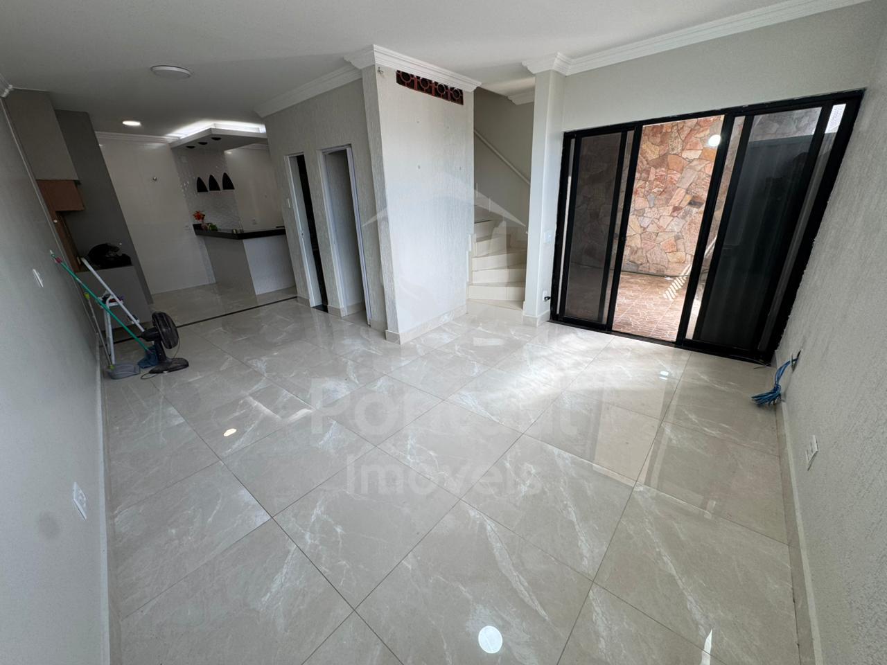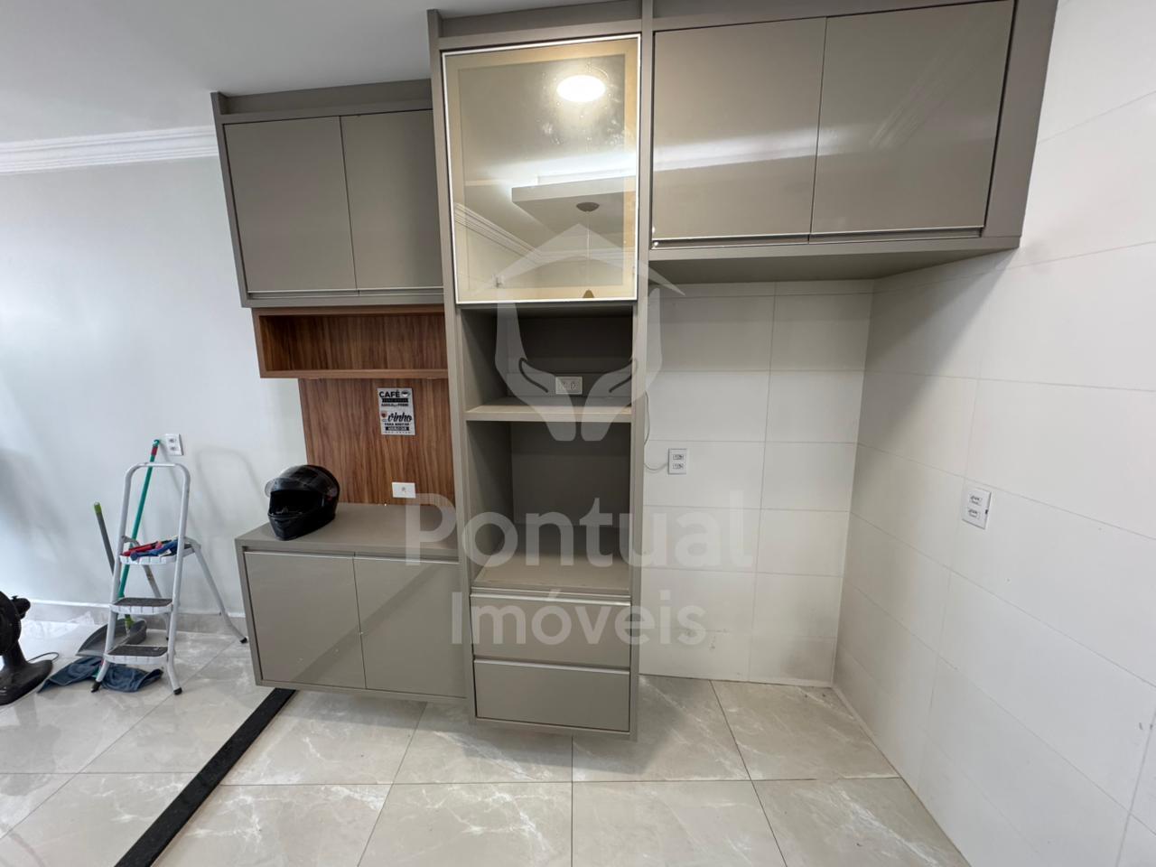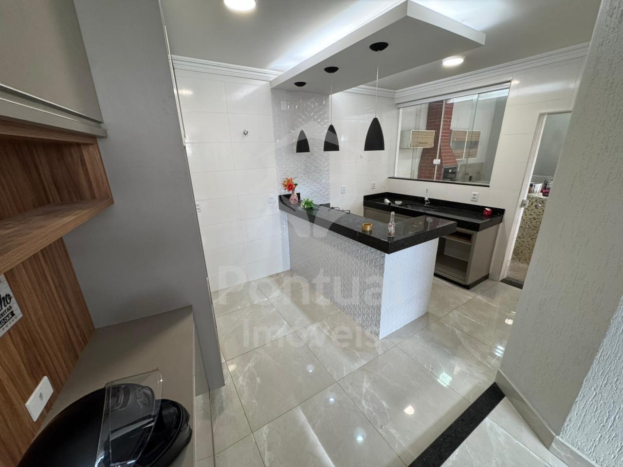 Primeiro piso, sala, lavabo, cozinha com armário cooktop, dispensa, área de serviço, área de churrasqueira, 01 vaga de garagem, Segundo piso, 03 quartos sendo 01 suíte com closet, banheiro suíte com box vidro e armário sob pia, 01 banheiro social com box vidro.