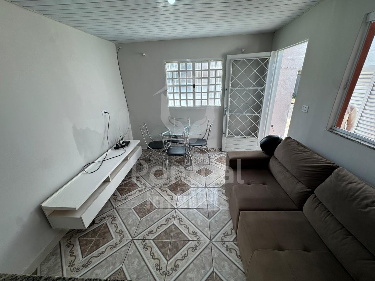Casa semi mobiliada, sendo 02 quarto com cama de casal, mesa, banheiro com armário e box, sala com sofa, mesa com cadeiras, cozinha com armário, geladeira, botijão de gás, pia, não tem garagem mas dá para guardar uma moto.