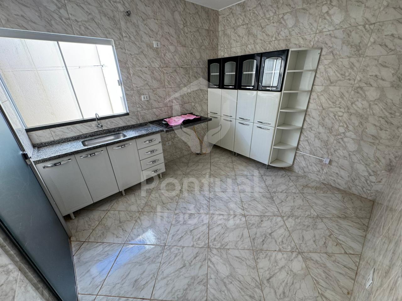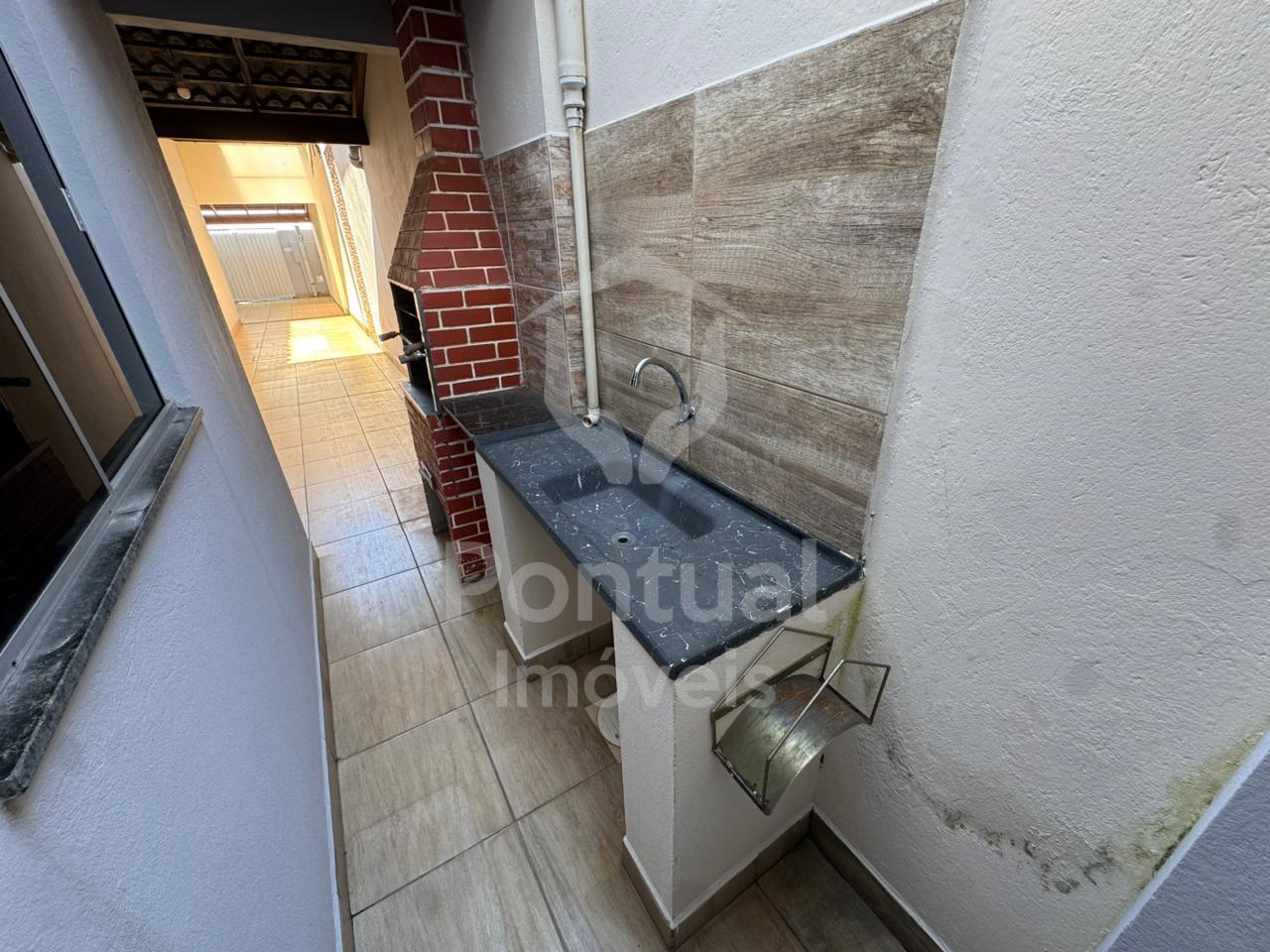 Casa com 02 quartos, sala, cozinha com armário e cooktop, 01 banheiro social com box vidro, área de serviço, garagem 01 carro pequeno, área de churrasqueira, água incluso no aluguel.
