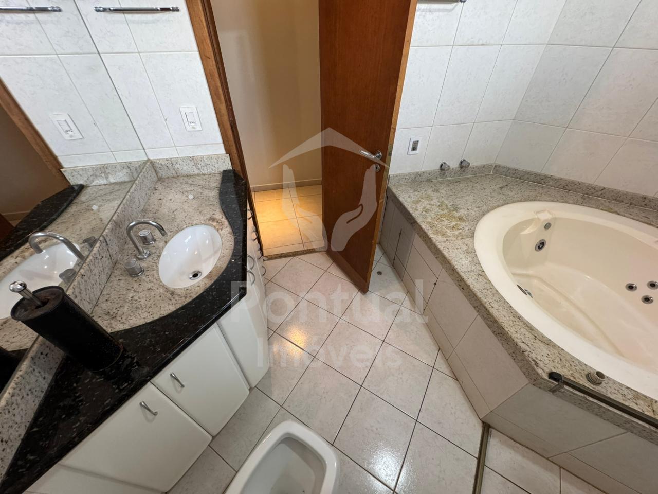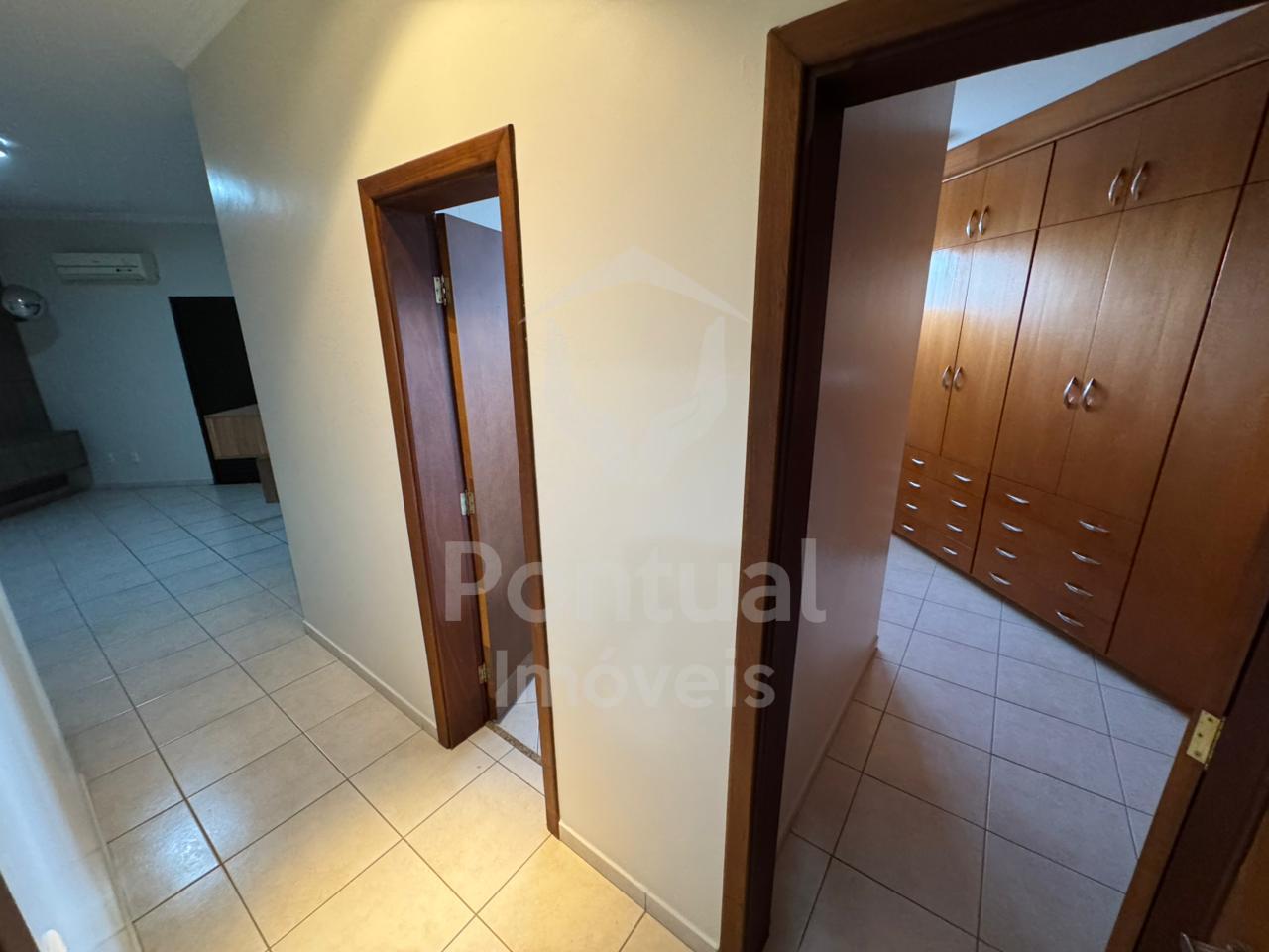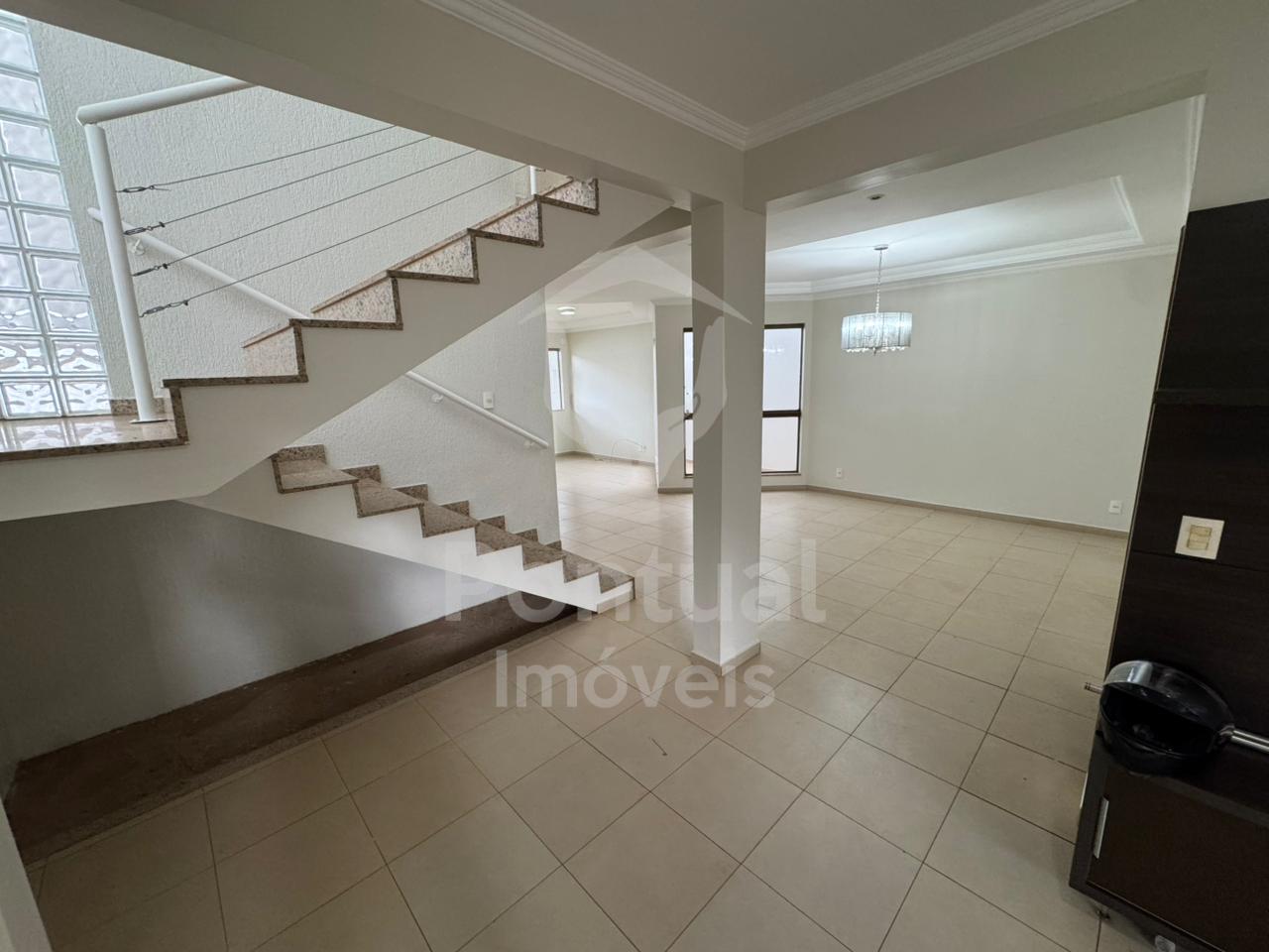 Casa estilo sobrado, 01 piso, sala em 02 ambientes, sala de Tv, lavabo, cozinha com armário, área de serviço com armário, dispensa, área de churrasqueira, 01 banheiro externo, garagem 02 carros, estacionamento 02 carros, 02 piso, escritório, 03 suíte sendo 02 com ar condicionado e armário sendo 01 closet sendo 01 suíte máster com hidromassagem, banheiro suíte com box vidro e armário sob pia.