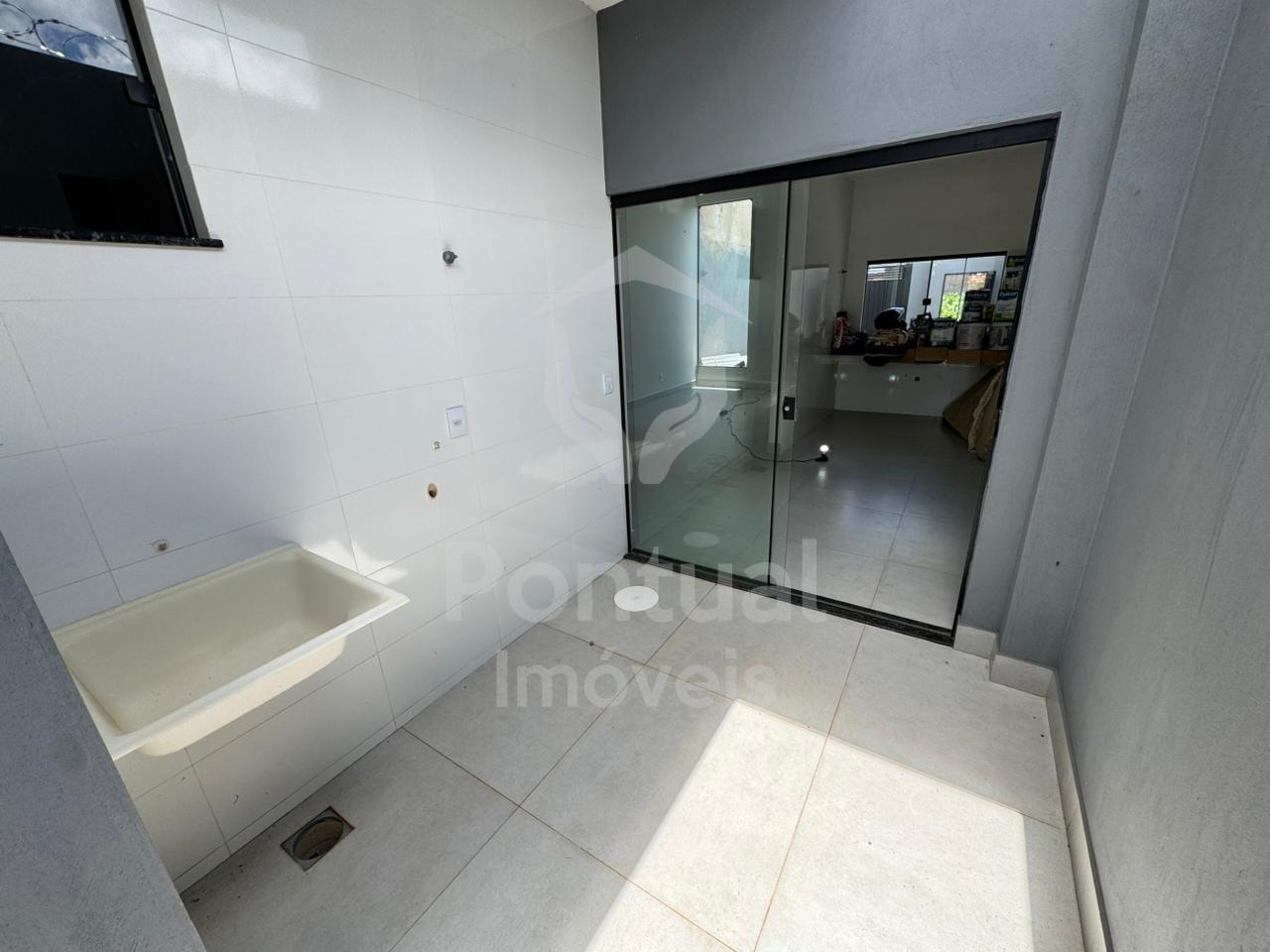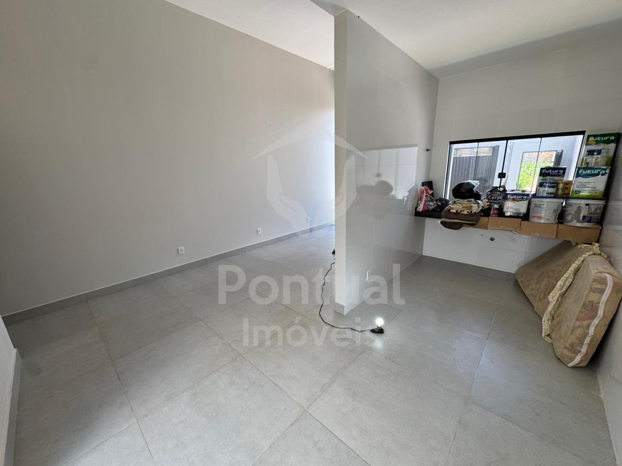 Casa nova disponível para aluguel 1ª locação. O imóvel conta com sala ampla, cozinha com bancada, lavanderia coberta e corredor de acesso aos 2 quartos, sendo 1 suíte, além de banheiro social com bancada. Possui piso em porcelanato, pintura nova, casa toda no blindex, garagem para 2 carros e segurança com concertina. Excelente acabamento.