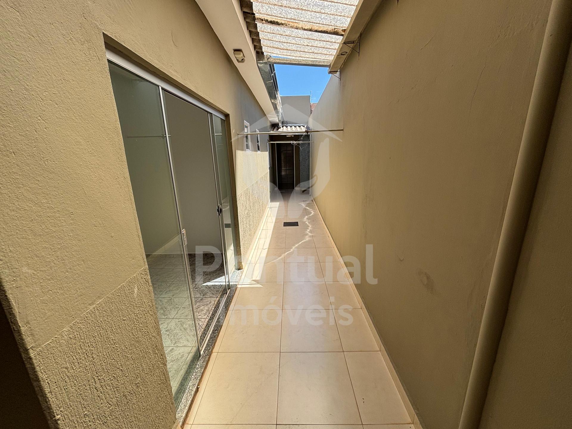 Casa disponível para locação no bairro Santa Rosa, composta por sala em dois ambientes, 03 quartos sendo 01 suíte, banheiro social, cozinha com armários sob a pia, área de serviço, e garagem coberta para 03 carros. (ENTRADA COMPARTILHADA)